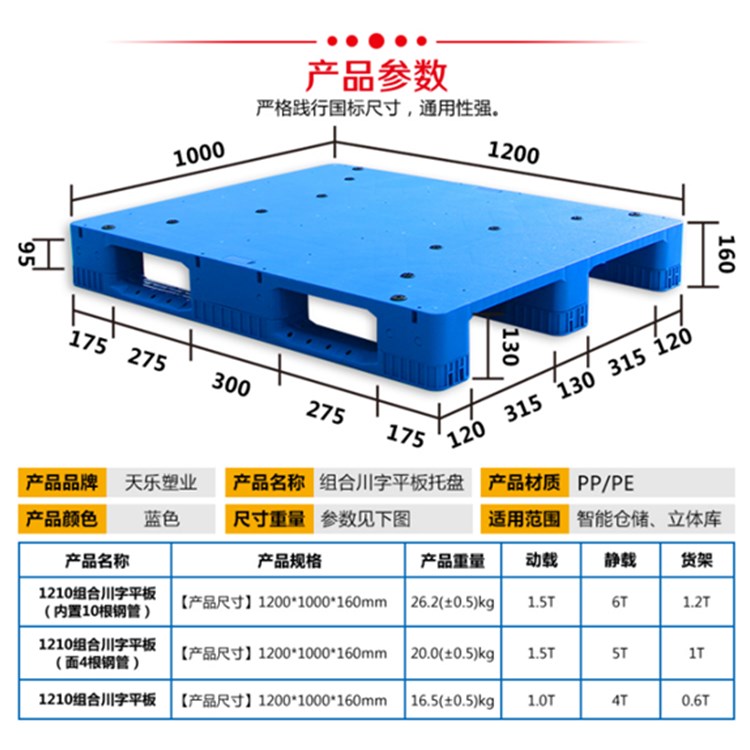 ZPCG-1210組合川字平板塑料托盤-加10根鋼管