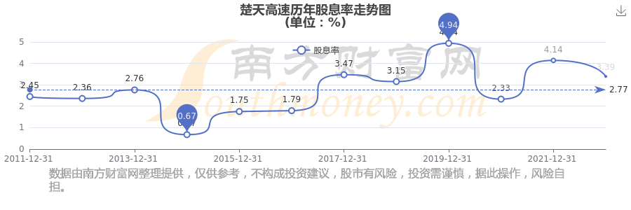 近年楚天高速年度股息率走勢如下圖: