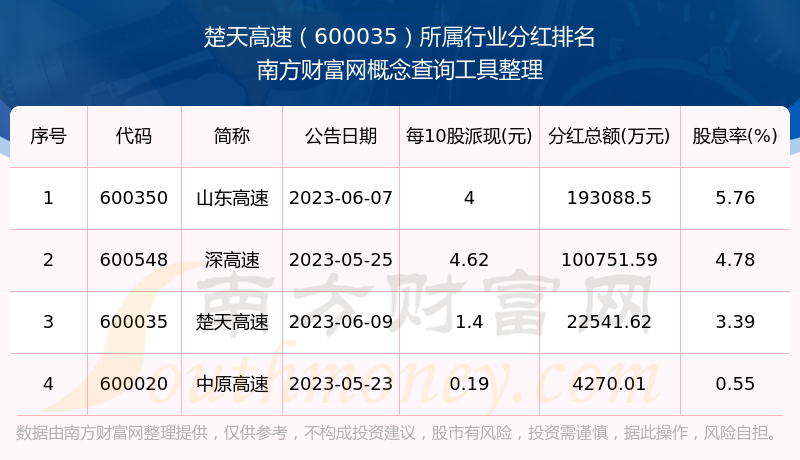 二、楚天高速600035行業分紅排名
