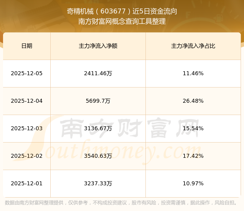 二、奇精機械(603677)近期盤面、資金面情況