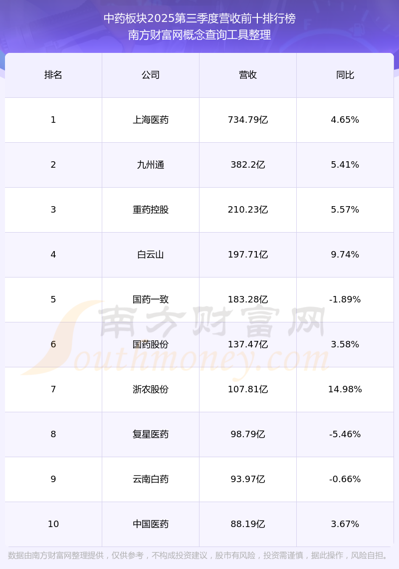 按照南方財富網概念查詢工具統計,該股所屬板塊為中藥板塊,該板塊共有160只股票,江中藥業2025第三季度營收在該板塊中排名為第59名,該板塊2025第三季度營收排名前十的股票如下表: