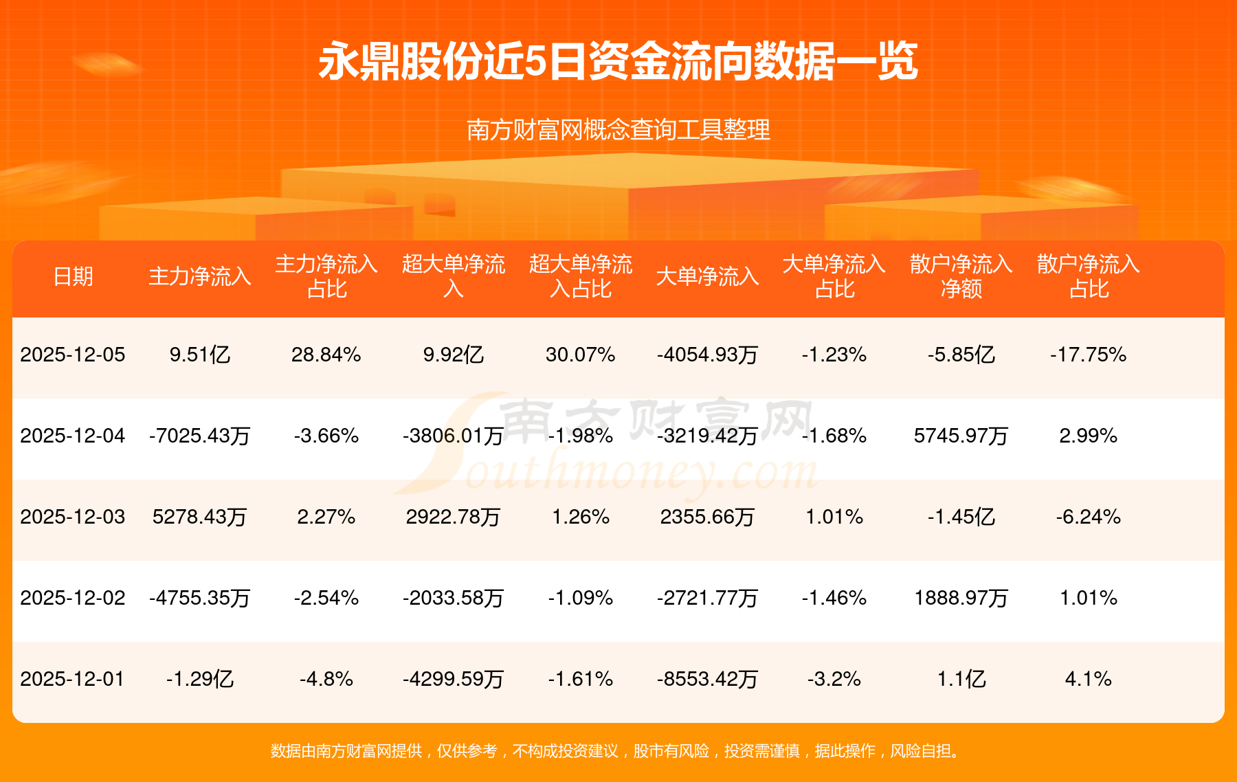12月5日消息,永鼎股份主力凈流入9.51億元,超大單凈流入9.92億元,散戶凈流出5.85億元。