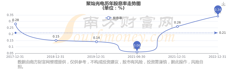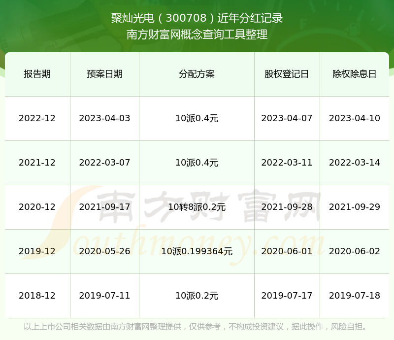 聚燦光電最新一次公布的分紅方案為10派0.4元。本次權(quán)益分派股權(quán)登記日為2023年4月7日,除權(quán)除息日為2023年4月10日,派息日為2023年4月10日。