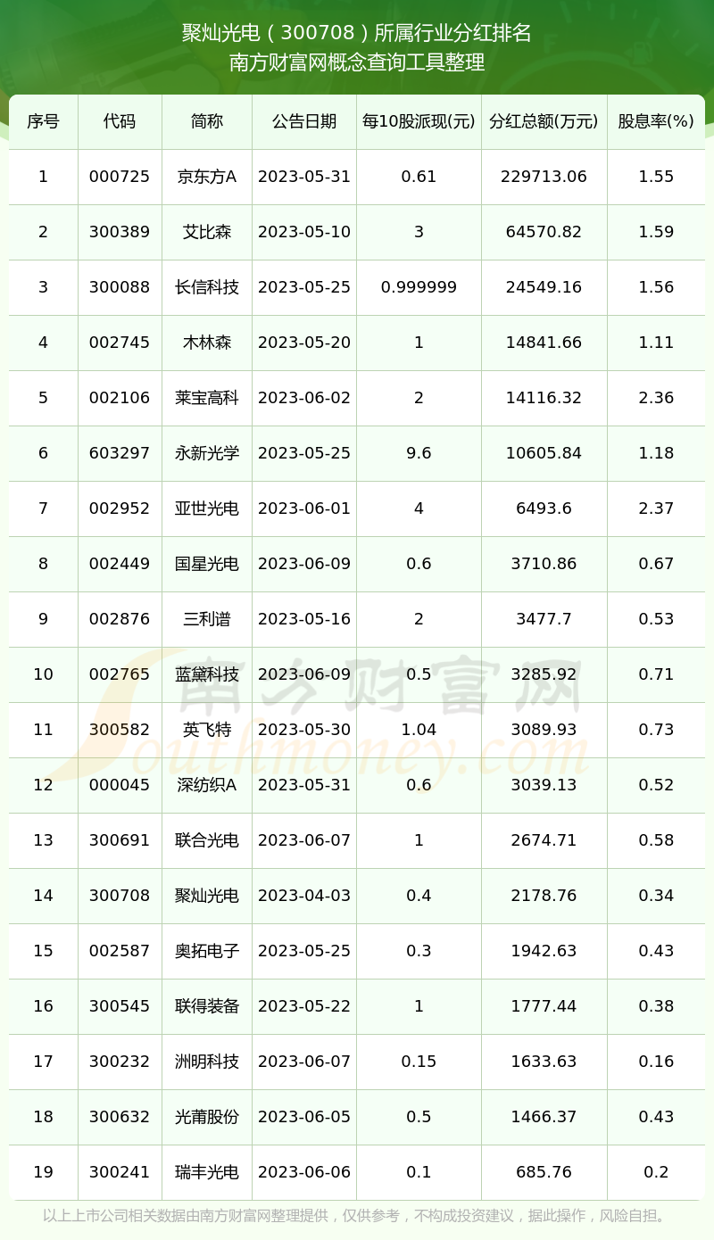按照南方財(cái)富網(wǎng)趨勢選股系統(tǒng)統(tǒng)計(jì),聚燦光電所屬行業(yè)為氮化鎵行業(yè),氮化鎵行業(yè)分紅排名情況如下表: