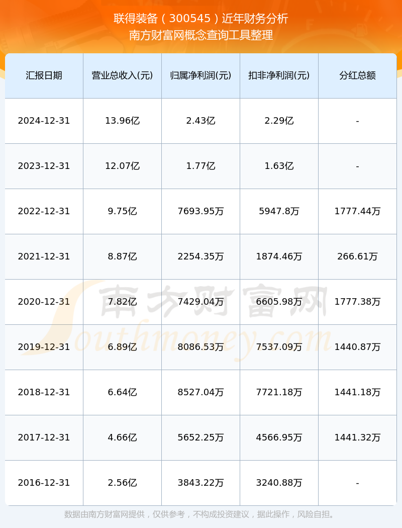 近年聯得裝備分紅派息情況如下表所示: