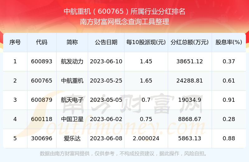 按照南方財富網趨勢選股系統統計,中航重機所屬行業為鍛造行業,鍛造行業分紅排名情況如下表: