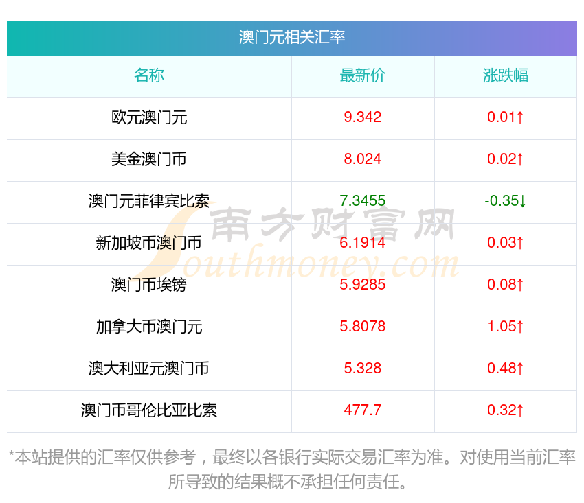 南方財(cái)富網(wǎng)為您提供澳門元對(duì)美金匯率最新價(jià)格詳情。