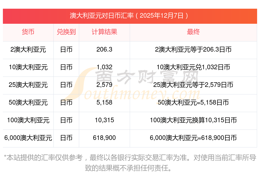 今天143澳大利亞元兌日幣匯率又是多少?2025-12-7