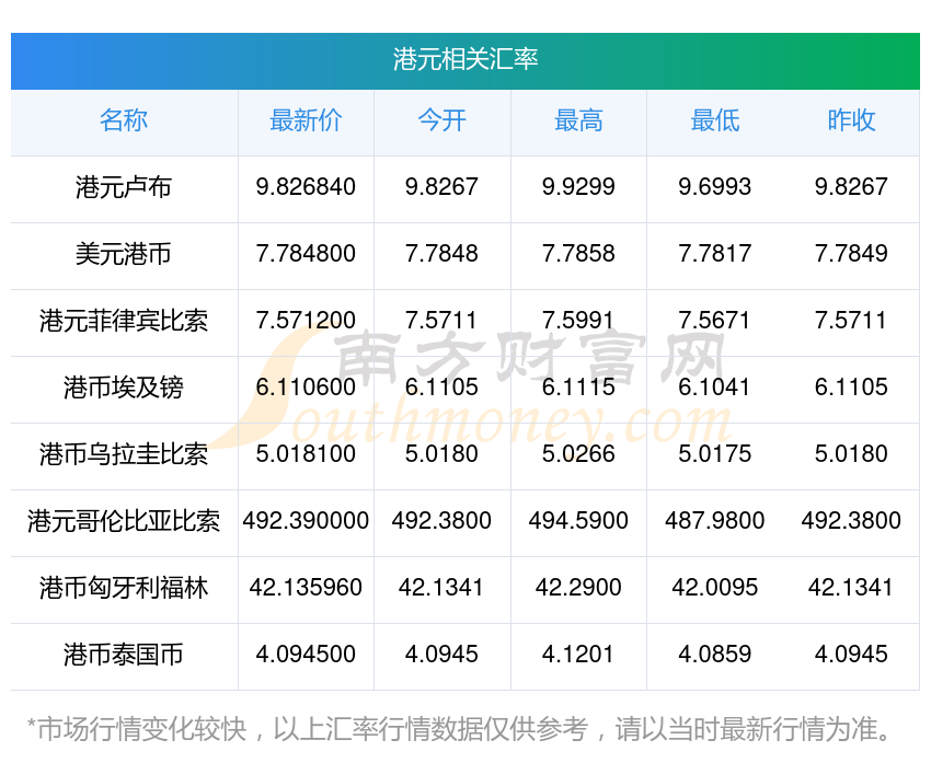 南方財富網(wǎng)為您提供港元對南特匯率最新價格詳情。