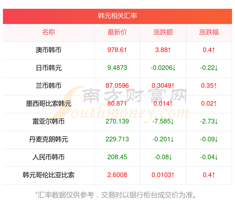 南方財富網為您提供韓元對哥倫比亞比索匯率最新價格詳情。