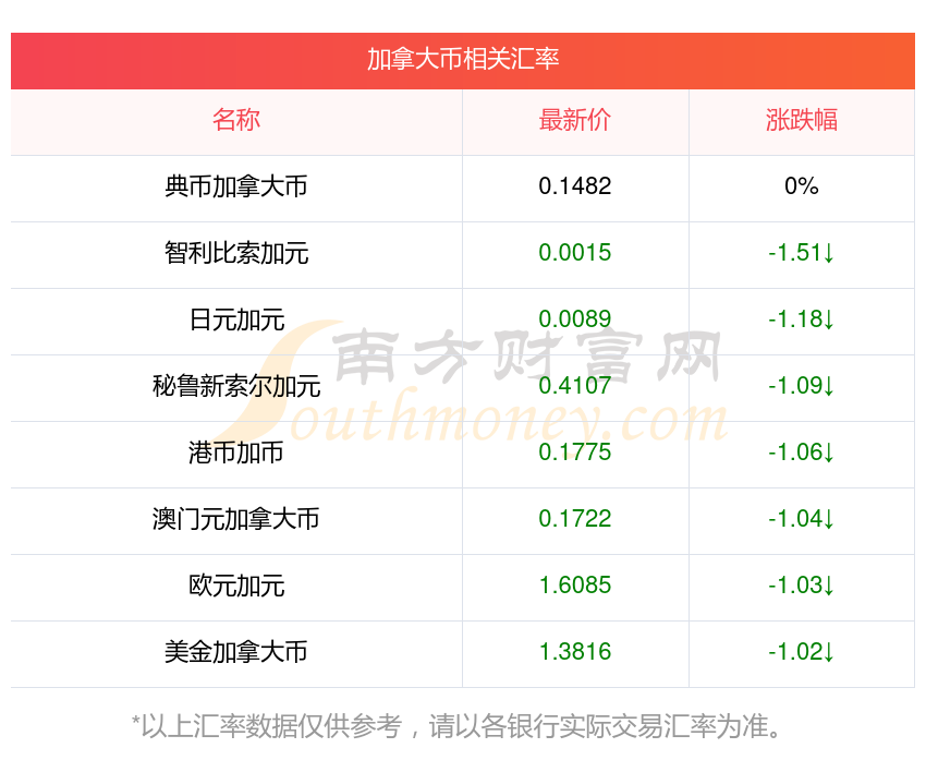 南方財富網為您提供加拿大幣對林吉特匯率最新價格詳情。