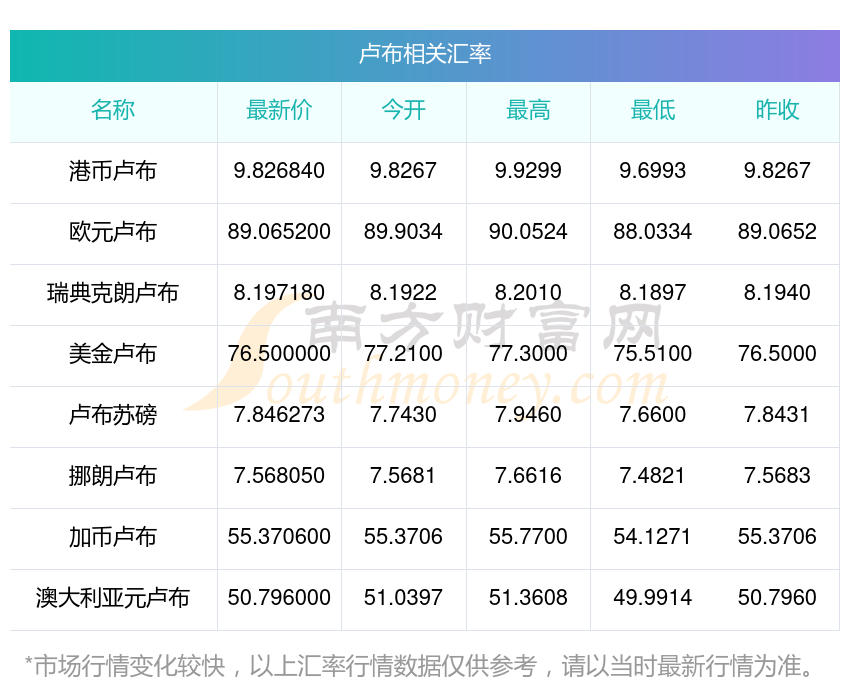 南方財富網(wǎng)為您提供盧布對菲幣匯率最新價格詳情。