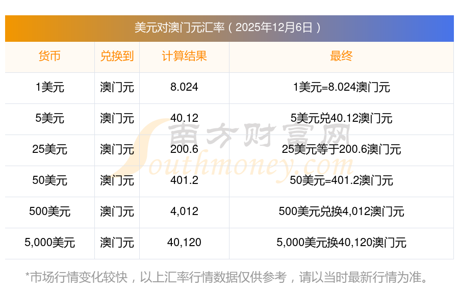 今天美元對(duì)澳門元匯率_4美元對(duì)澳門元匯率查詢(12-6)