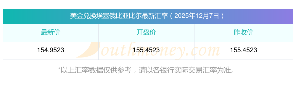 美元匯率調整:美元與埃塞俄比亞比爾兌換多少?2025/12/7