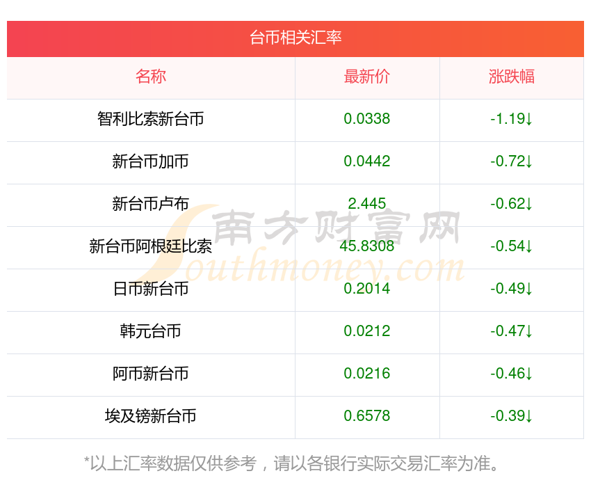 南方財富網為您提供臺幣對瑞郎匯率最新價格詳情。