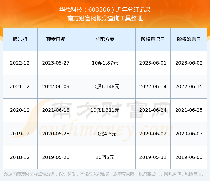 華懋科技最新一次公布的分紅方案:10派1.87元。