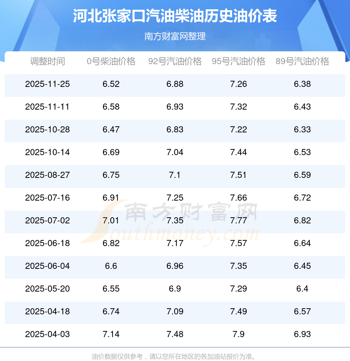 汽油、柴油12月7日每升的價格為:92號汽油6.88元;95號汽油7.26元;89號汽油6.38元;0號柴油6.52元,本次油價調整時間是11月25日。下一輪油價調整時間12月8日24時,距離現在還有1.59天。