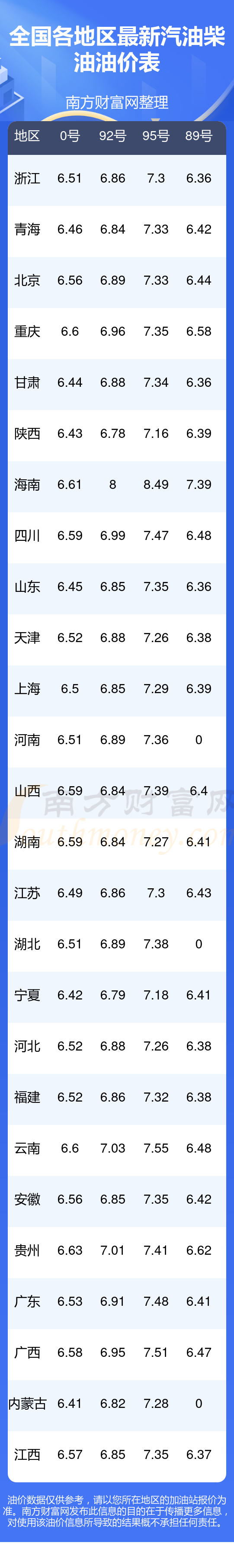 2025年12月7日全國各地汽油價(jià)格一覽表