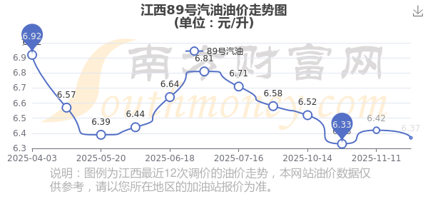 12月7日江西汽柴油價格走勢圖