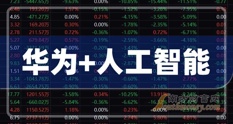 據南方財富網概念查詢工具數據顯示,相關華為+人工智能受益公司有: