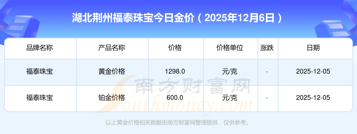 今天黃金價格幾何?現在每克黃金值多少錢?湖北荊州福泰珠寶金價今日價格:黃金價格1328.0元/克,鉑金價格662.0元/克,飾品金價(內地)1328.0元/克,黃金飾品(香港)46550.0,鉑金價格(香港)18970.0,金條價格(香港)41990.0,金條金價(內地)1165.0元/克,黃金價格1325.0元/克,鉑金價格600.0元/克,足金價格1325.0元/克,黃金價格1289.0元/克。