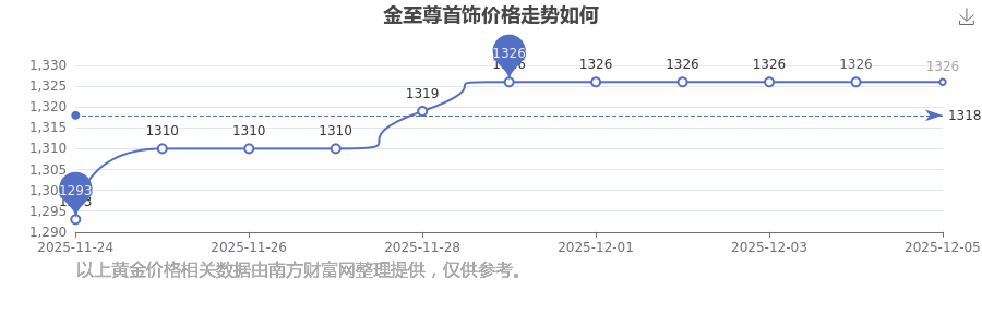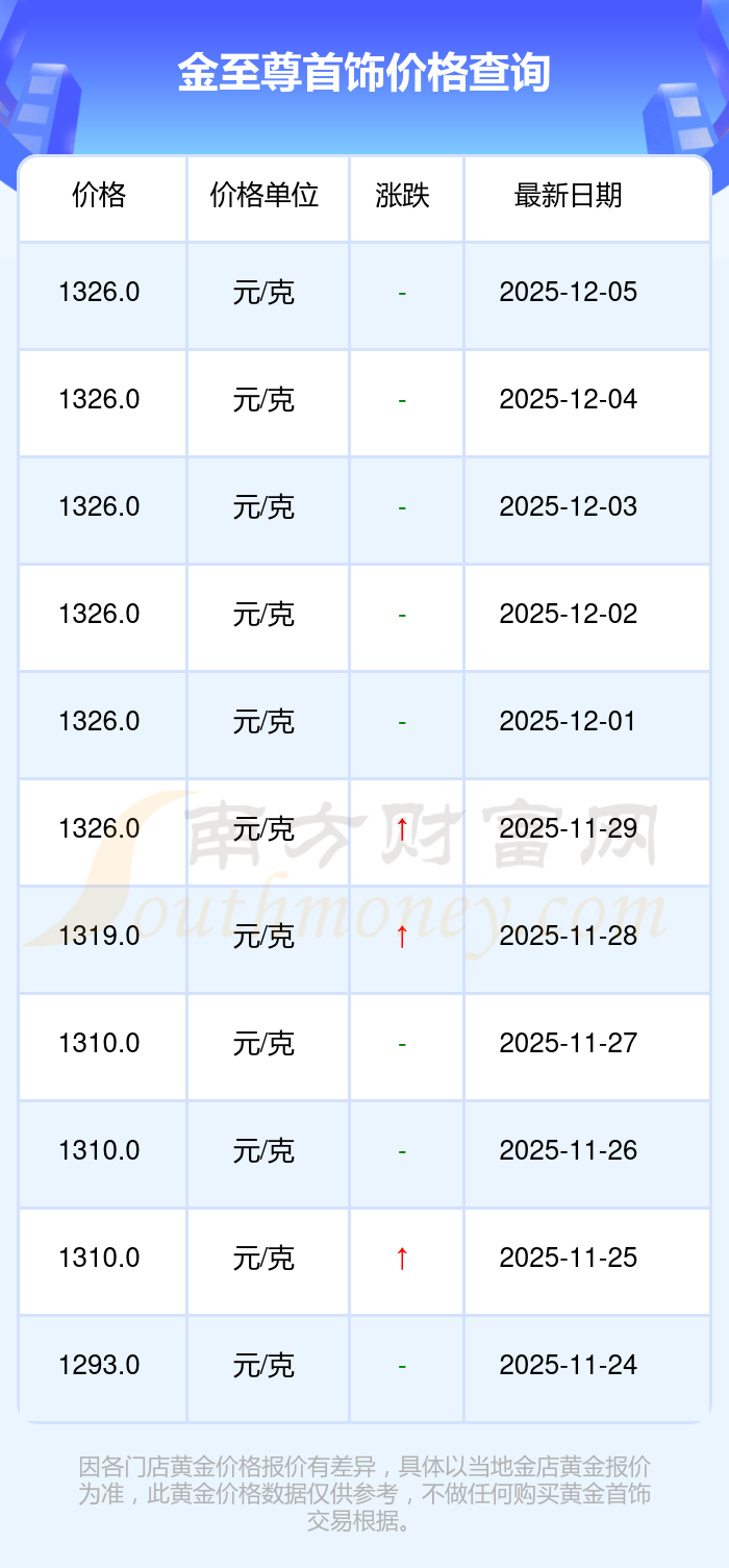 2025年12月6日金至尊首飾價格最新是1326.0元/克。