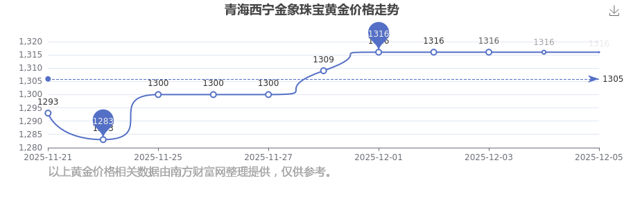 今日青海西寧金象珠寶黃金價格為1316.0元/克。