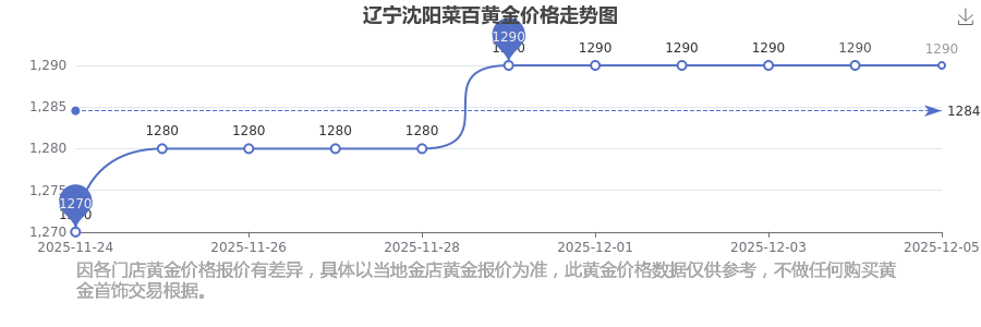 遼寧沈陽菜百黃金價(jià)格在 2025年12月6日為 1290.0元/克。