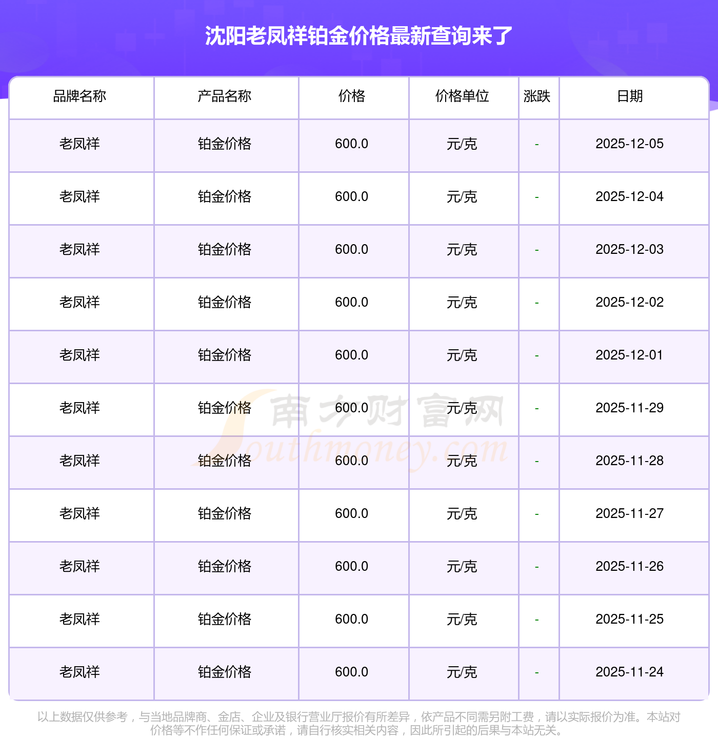 2025年12月6日,周大福、周大福、周大福、周大福、周大福、周大福、周大福、老鳳祥、老鳳祥、老鳳祥、周六福等各大金店品牌鉑金價格今日價格如下:周大福1328.0元/克、周大福662.0元/克、周大福1328.0元/克、周大福46550.0、周大福18970.0、周大福41990.0、周大福1165.0元/克、老鳳祥1325.0元/克、老鳳祥600.0元/克、老鳳祥1325.0元/克、周六福1289.0元/克。