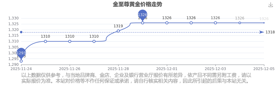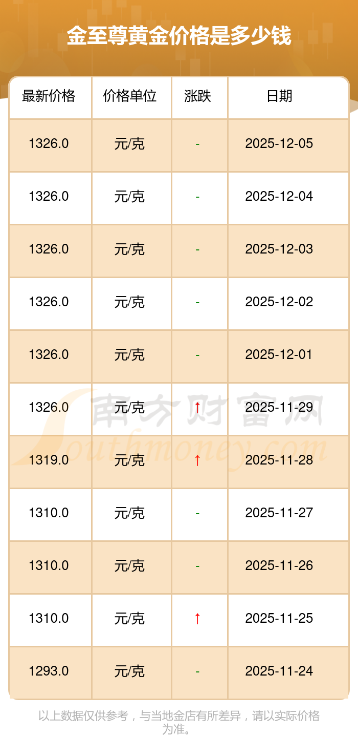 今日金至尊所公布的 黃金價(jià)格最新價(jià)格為1326.0元/克。