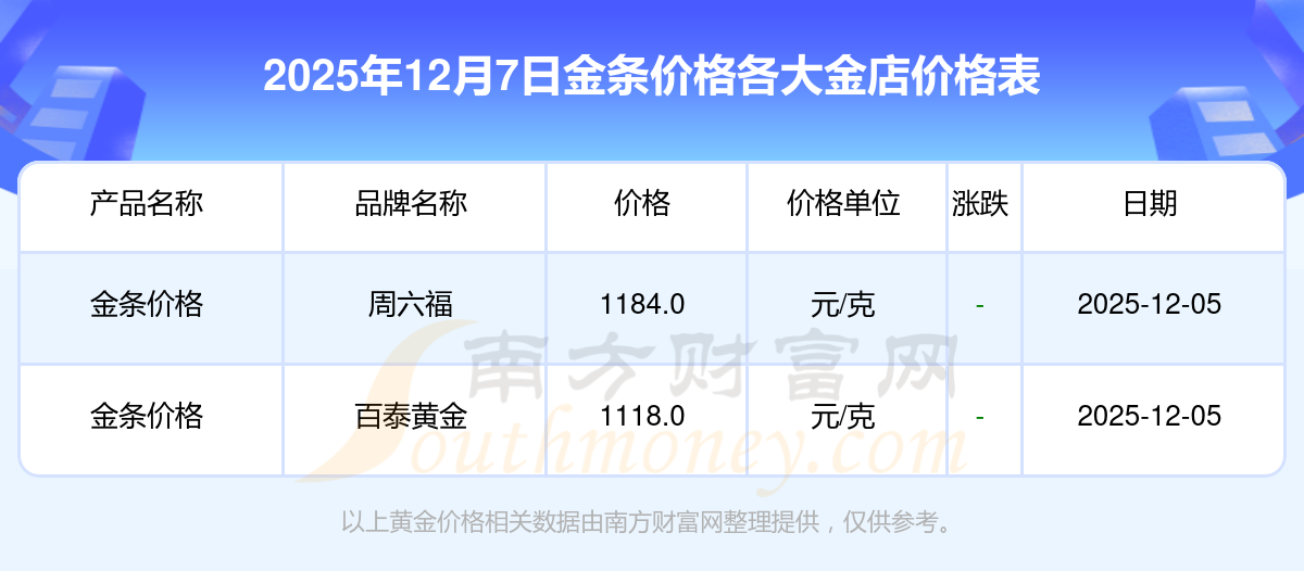 今日金條價格表來了_2025年12月7日各金店金條價格多少一克呢?一起來看看吧!