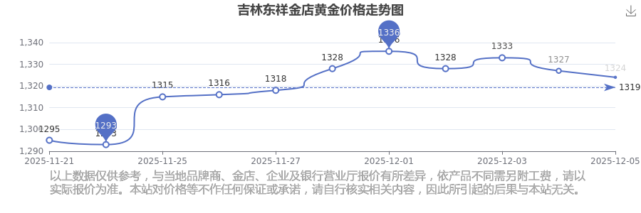 今日吉林東祥金店黃金價格為1324.0元/克。