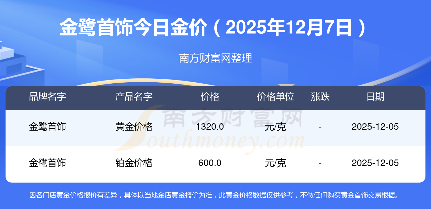 2025年12月7日周大福、周大福、周大福、周大福、周大福、周大福、周大福、老鳳祥、老鳳祥、老鳳祥、周六福等各大金店品牌黃金價格最新價格如下:周大福黃金價格1328.0元/克,周大福鉑金價格662.0元/克,周大福飾品金價(內(nèi)地)1328.0元/克,周大福黃金飾品(香港)46550.0,周大福鉑金價格(香港)18970.0,周大福金條價格(香港)41990.0,周大福金條金價(內(nèi)地)1165.0元/克,老鳳祥黃金價格1325.0元/克,老鳳祥鉑金價格600.0元/克,老鳳祥足金價格1325.0元/克,周六福黃金價格1289.0元/克。