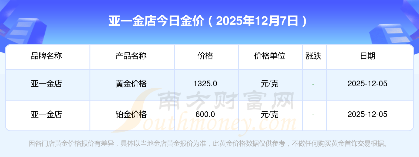 亞一金店金價今日價格: