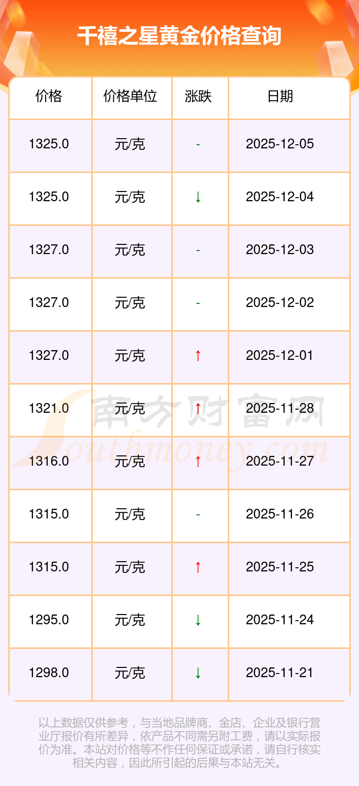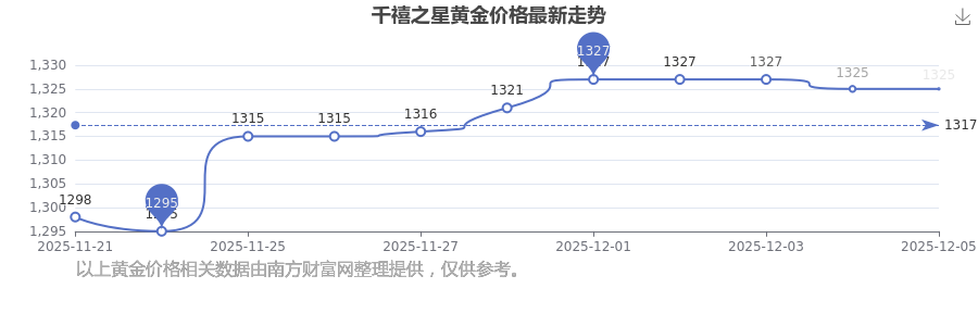 當下,千禧之星 黃金價格今日的最新價格是1325.0元/克。