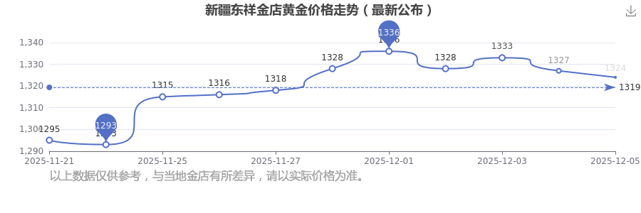 1324.0元/克的黃金價(jià)格,是新疆東祥金店在 2025年12月7日給出的。