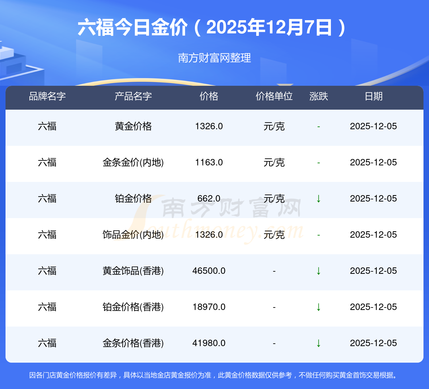 黃金價格1328.0元/克,鉑金價格662.0元/克,飾品金價(內地)1328.0元/克,黃金飾品(香港)46550.0,鉑金價格(香港)18970.0,金條價格(香港)41990.0,金條金價(內地)1165.0元/克,黃金價格1325.0元/克,鉑金價格600.0元/克,足金價格1325.0元/克,黃金價格1289.0元/克。
