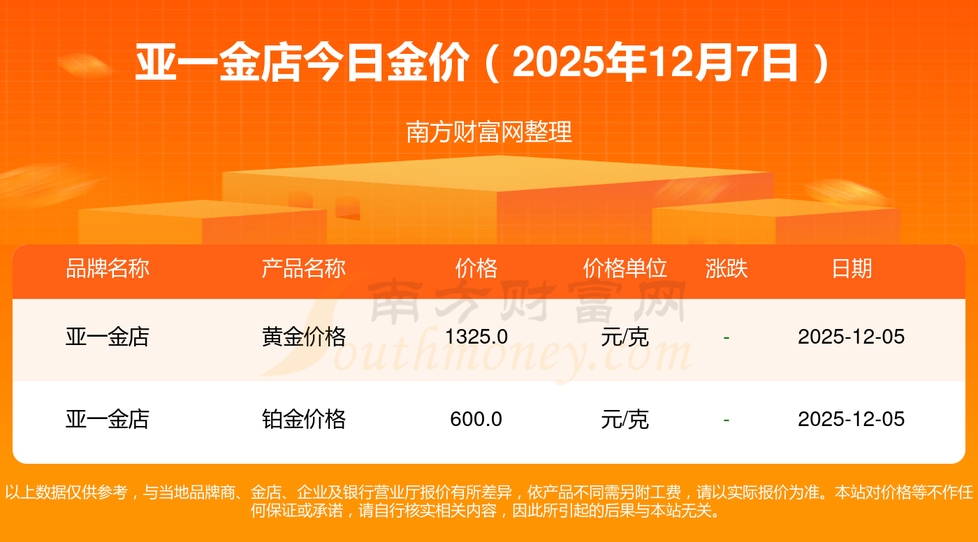 今天是2025年12月7日,周大福、周大福、周大福、周大福、周大福、周大福、周大福、老鳳祥、老鳳祥、老鳳祥、周六福等各大金店品牌黃金價格最新價格如下:周大福1328.0元/克、周大福662.0元/克、周大福1328.0元/克、周大福46550.0、周大福18970.0、周大福41990.0、周大福1165.0元/克、老鳳祥1325.0元/克、老鳳祥600.0元/克、老鳳祥1325.0元/克、周六福1289.0元/克。