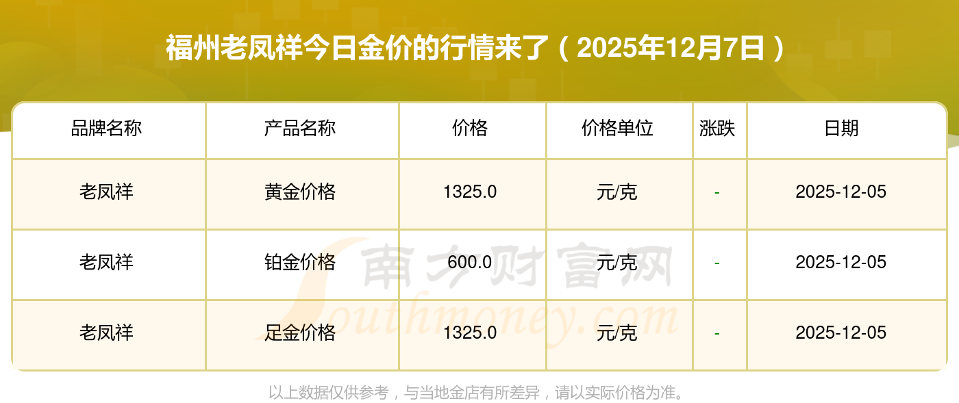 2025年12月7日老鳳祥金條多少錢1克 現(xiàn)在福州老鳳祥黃金價格查詢