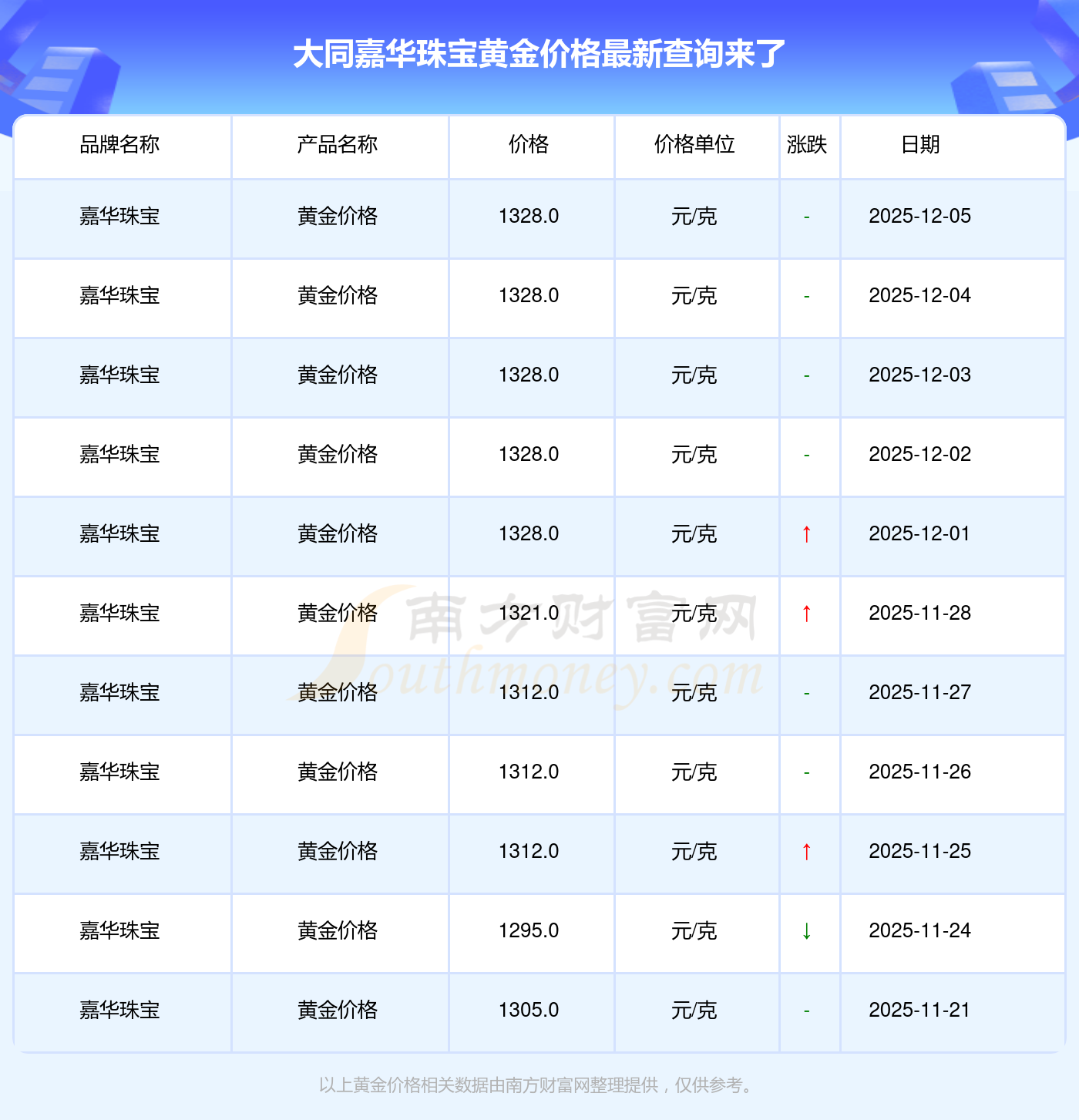 2025年12月7日,大同嘉華珠寶的黃金價(jià)格標(biāo)價(jià)達(dá)到 1328.0元/克。