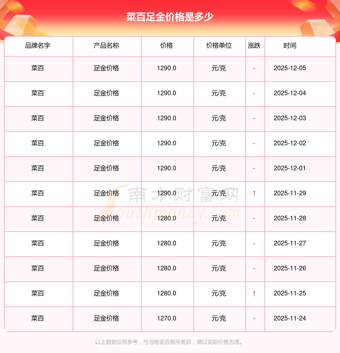 當下,菜百 足金價格今日的最新價格是1290.0元/克。