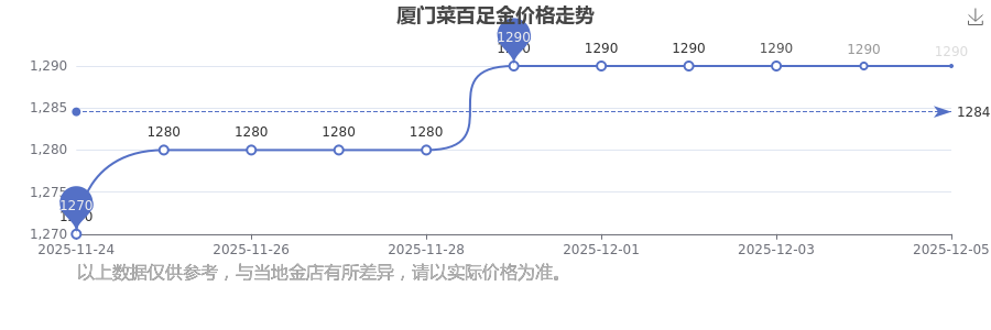 廈門菜百的足金價格在今日(2025年12月7日),每克售價為1290.0元/克。