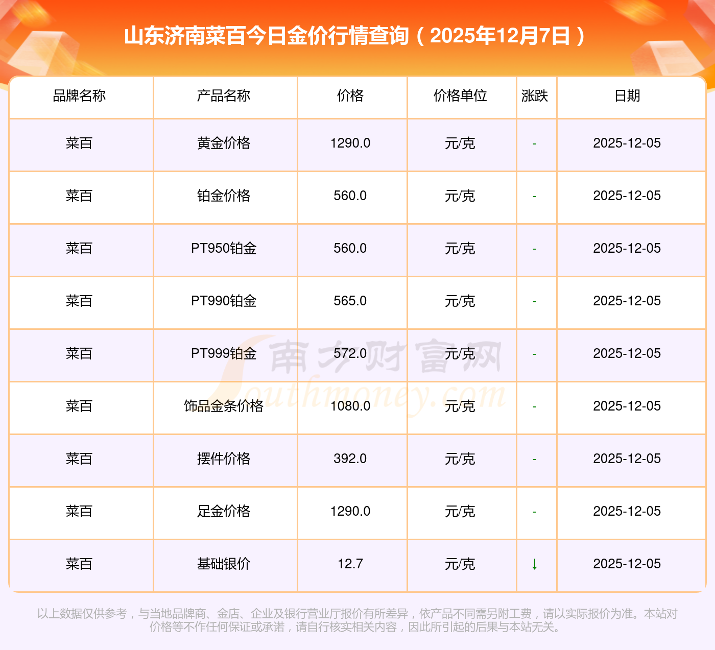 2025年12月7日菜百金條多少錢1克 現在山東濟南菜百黃金價格查詢