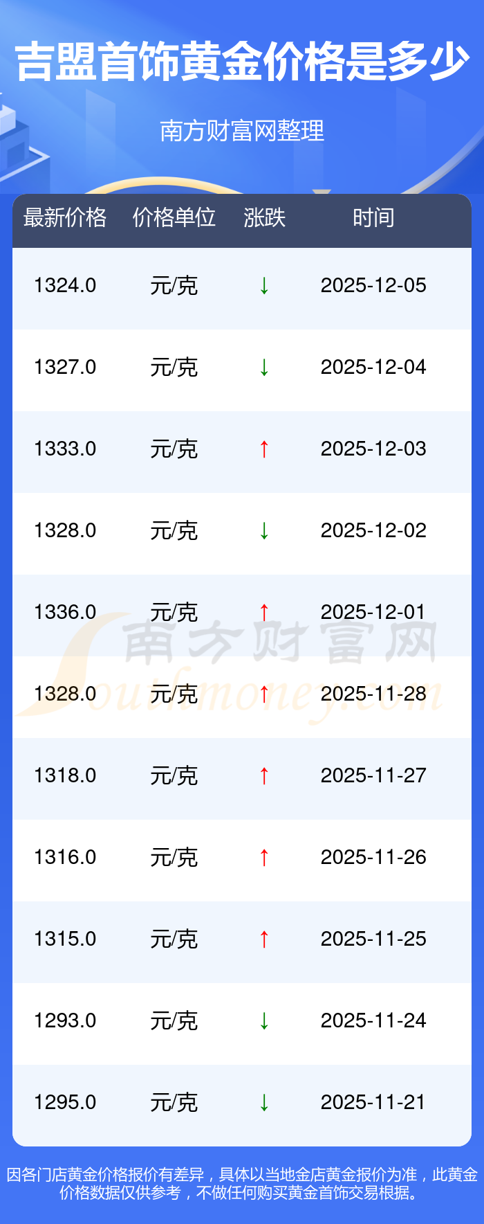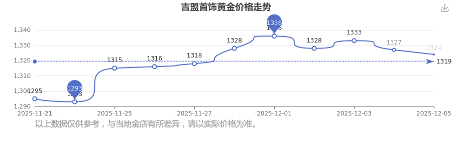 吉盟首飾今日 黃金價格的最新市場行情價為1324.0元/克。