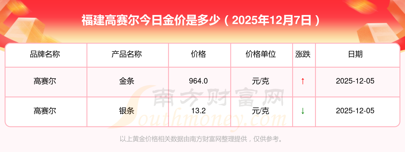 2025年12月7日現(xiàn)在福建高賽爾黃金價(jià)格多少錢(qián)一克?