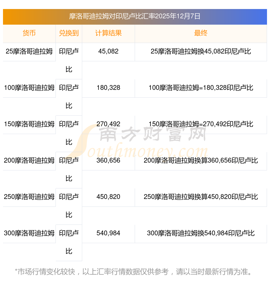 2025年12月7日摩洛哥迪拉姆兌換印尼盧比匯率是:1803.28