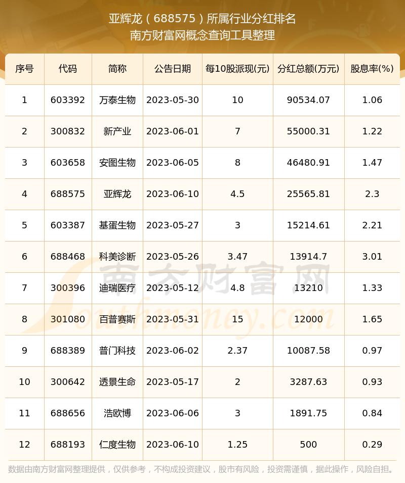 二、亞輝龍688575行業(yè)分紅排名