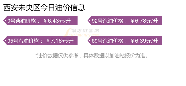 12月7日,西安未央?yún)^(qū)汽油、柴油每升的價格為11月25日調(diào)整后的價格,具體為:92號汽油為6.78元,減了0.05元,減幅達0.73%;95號汽油為7.16元,減了0.06元,減幅達0.83%;89號汽油為6.39元,減了0.06元,減幅達0.93%;0號柴油為6.43元,減了0.05元,減幅達0.77%。