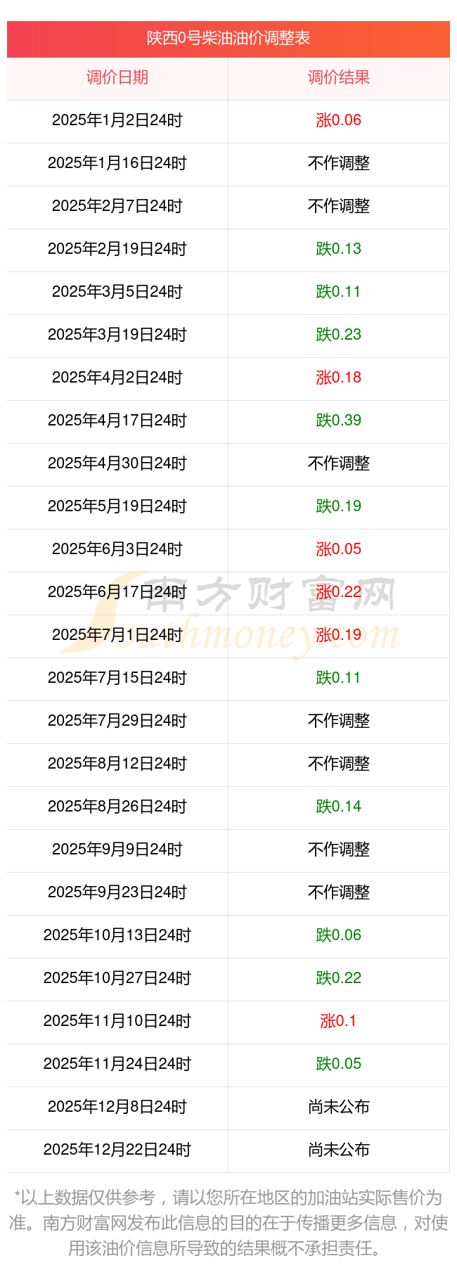 西安未央?yún)^(qū)12月7日0號柴油歷史油價調(diào)整一覽表