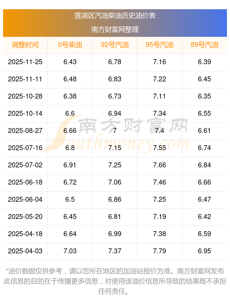 蓮湖區(qū)歷史油價表